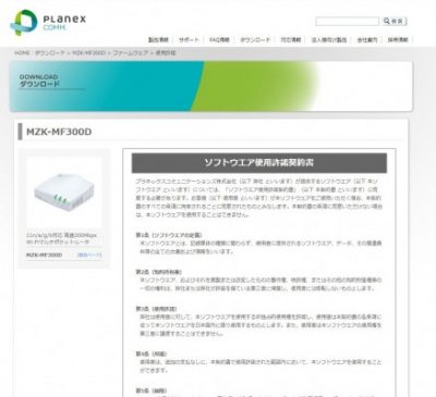 ファームウェア更新をするPCからMZK-MF300D用のファームウェアをダウンロード