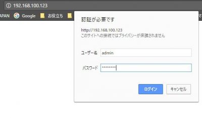 再起動したら192.168.100.123にログイン