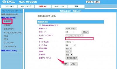 MZK-MF300D(ルーター)を社内の無線LANとは違うセグメントのローカルルーターとして使うのが今回の目的。ローカルルーターとすることにより違うセグメントのWi-Fi環境を作ることができ、セキュリティを高めることが可能になっています。まず無線LANの設定から行いましょう。