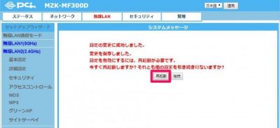 設定の変更に成功