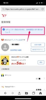 [セキュリティ強化のために、SMS認証に切り替えましょう]をクリック
