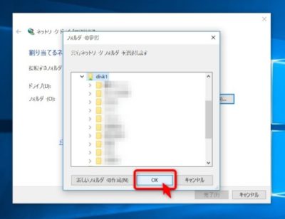 [OK]をクリック [完了]をクリック以上でNASドライブにドライブ名[W:]が割り当てられました