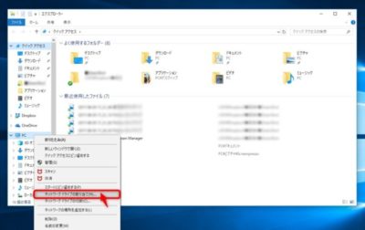 >[ネットワークドライブの割り当て]をクリック