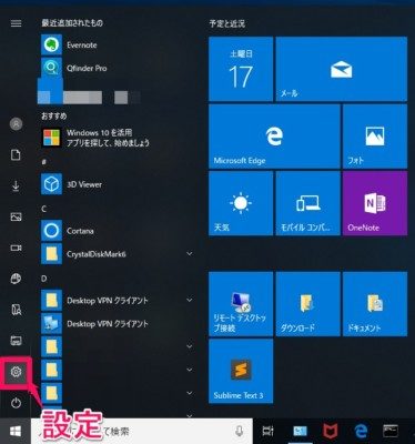 左下のWindowsボタンを左クリック