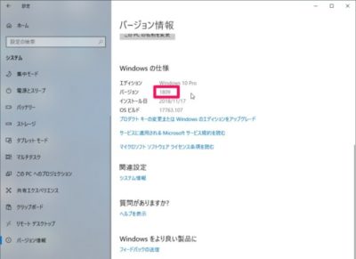 バージョンを確認して1809になっていればアップデート成功です