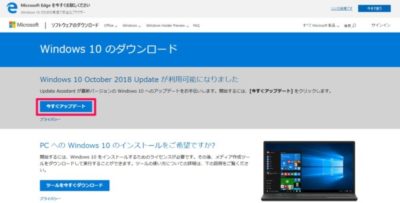 October 2018 Update ダウンロードページから[今すぐアップデート]をクリック