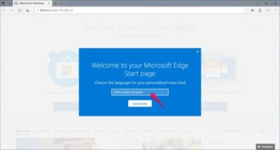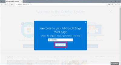 再起動するとMicrosoft Edgeが起動するので、Microsoft EdgeのStart pageで日本語を選択