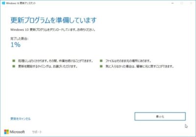 更新プログラムの準備に少し時間がかかるので、画面が邪魔になる場合は[最小化]をクリック