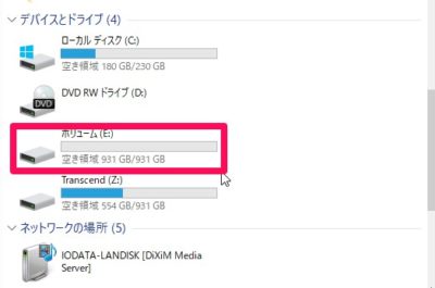 エクスプローラーでPCをみるとボリュームEが認識され表示されています